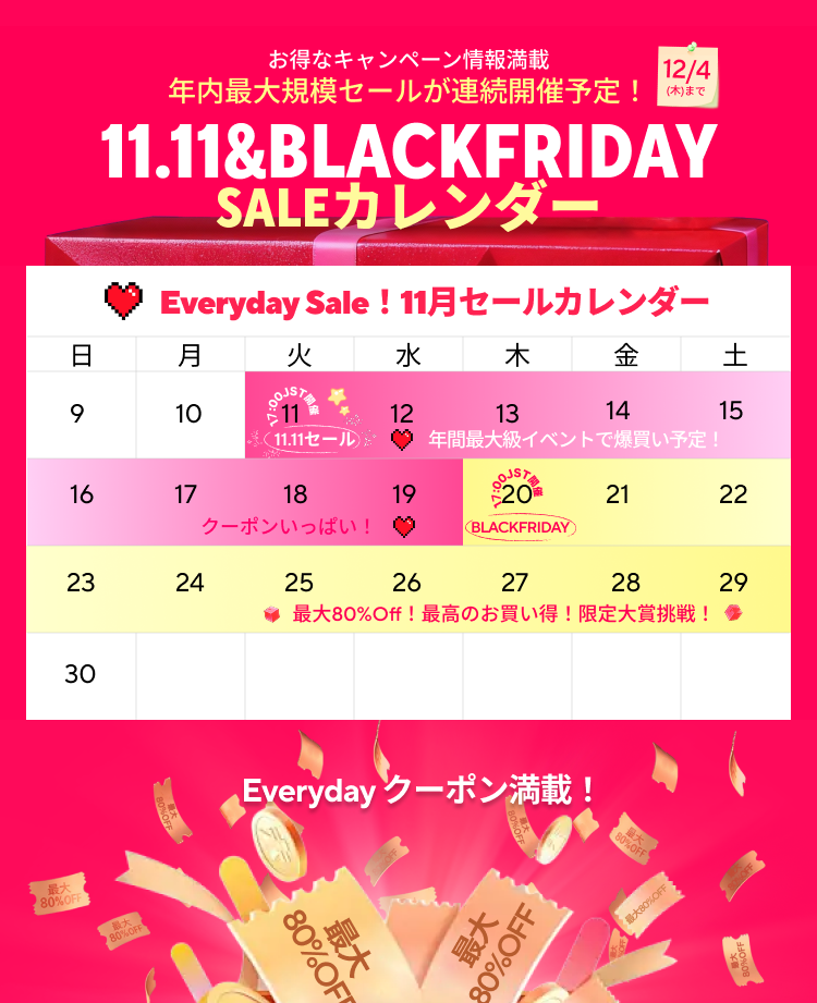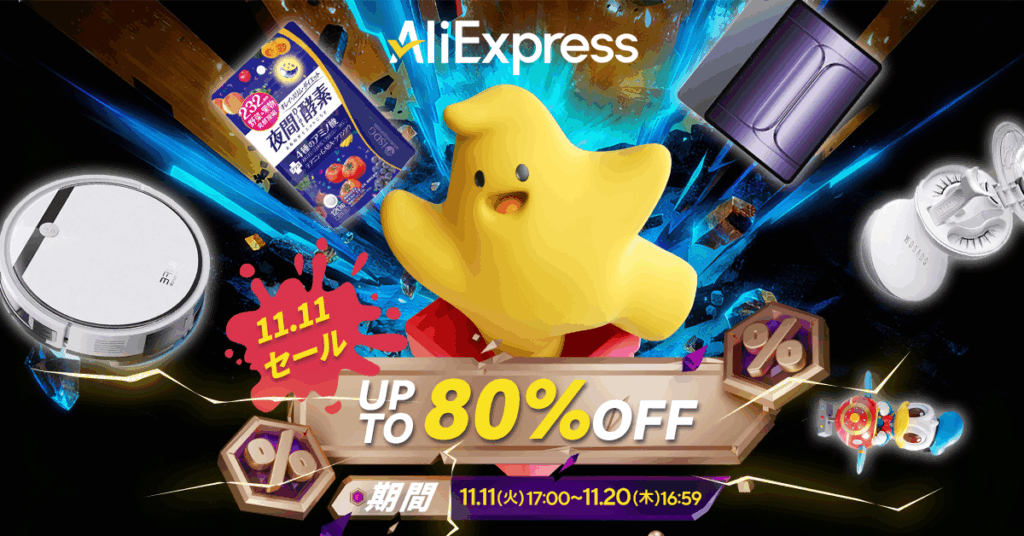 【2025年版】AliExpress 11.11セール開催!最大80%OFF&限定クーポンまとめ【11/11~11/20】まとめ